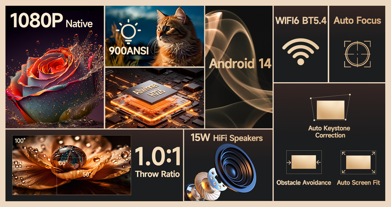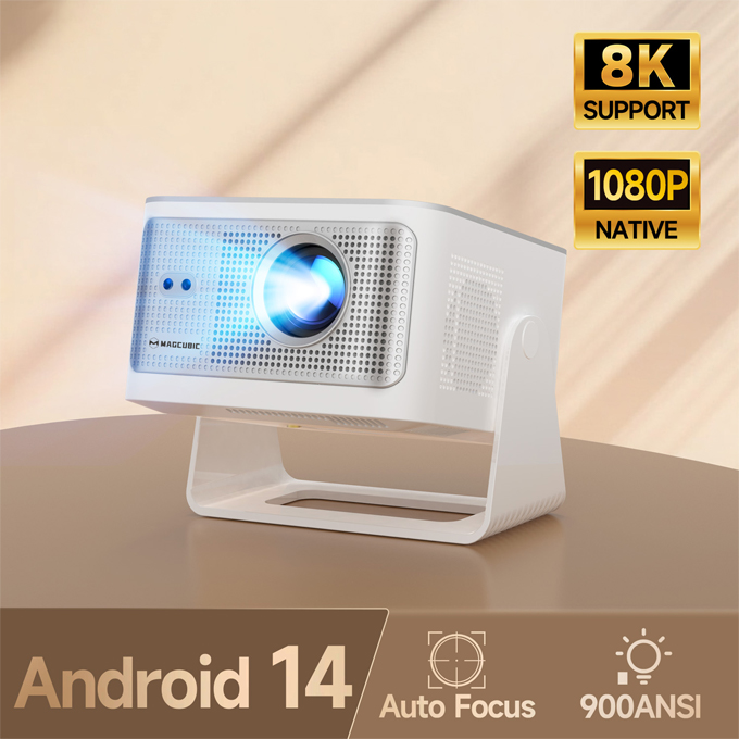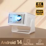 900 ANSI Portable Projector Native 1080P with 8K input Android 14 Auto Keystone & Focus Outdoor Friendly