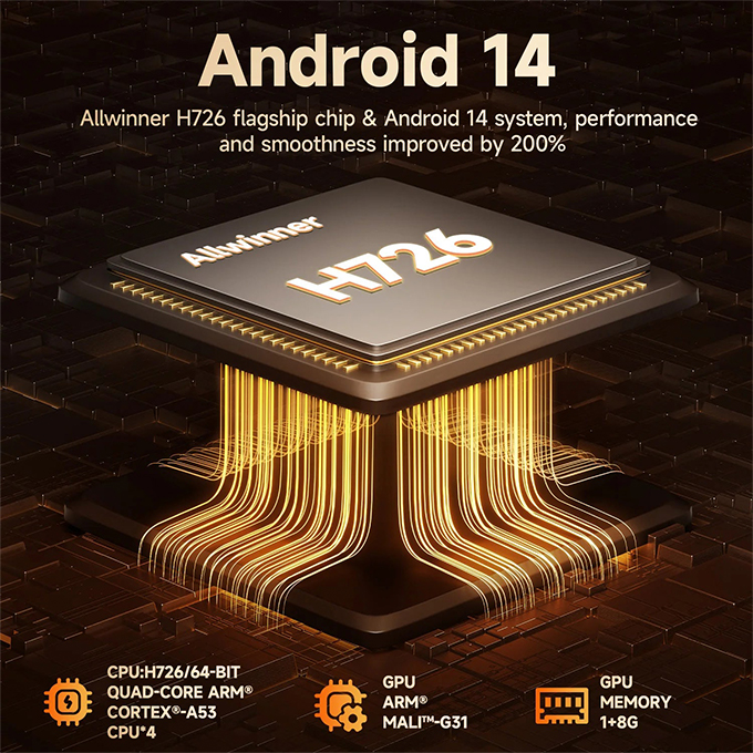 Get ready for a smarter, faster streaming experience! The new Android 14 system paired with the advanced Allwinner H726 chip brings everything to the next level. Enjoy ultra-responsive navigation, lightning-fast app launches, and performance that’s up to 200% smoother than the previous generation. Everything feels faster, more intuitive, and effortlessly seamless.