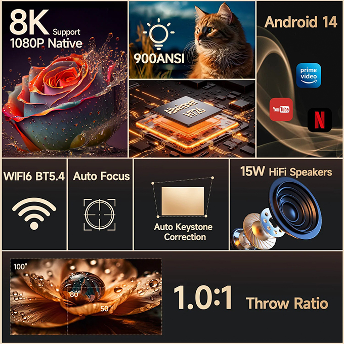 8K Native900 ANSIAuto FocusBluetooth 5.4Native 1080PWiFi 6