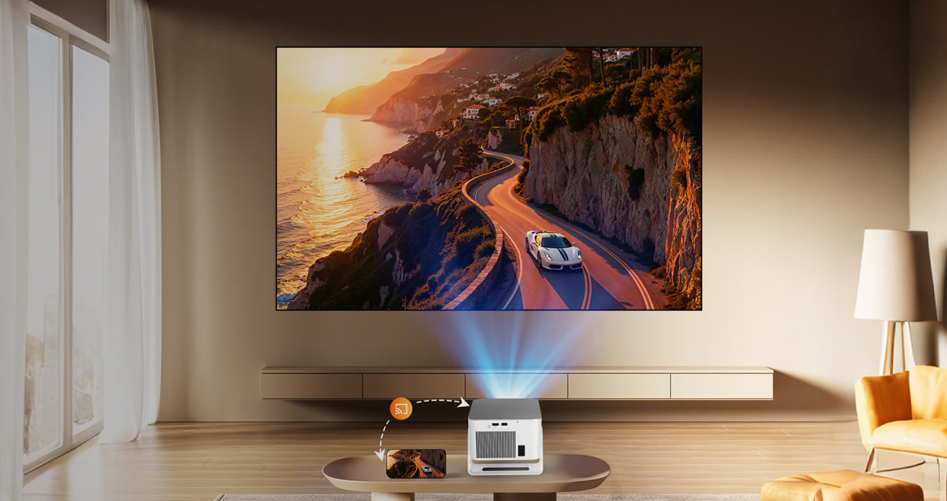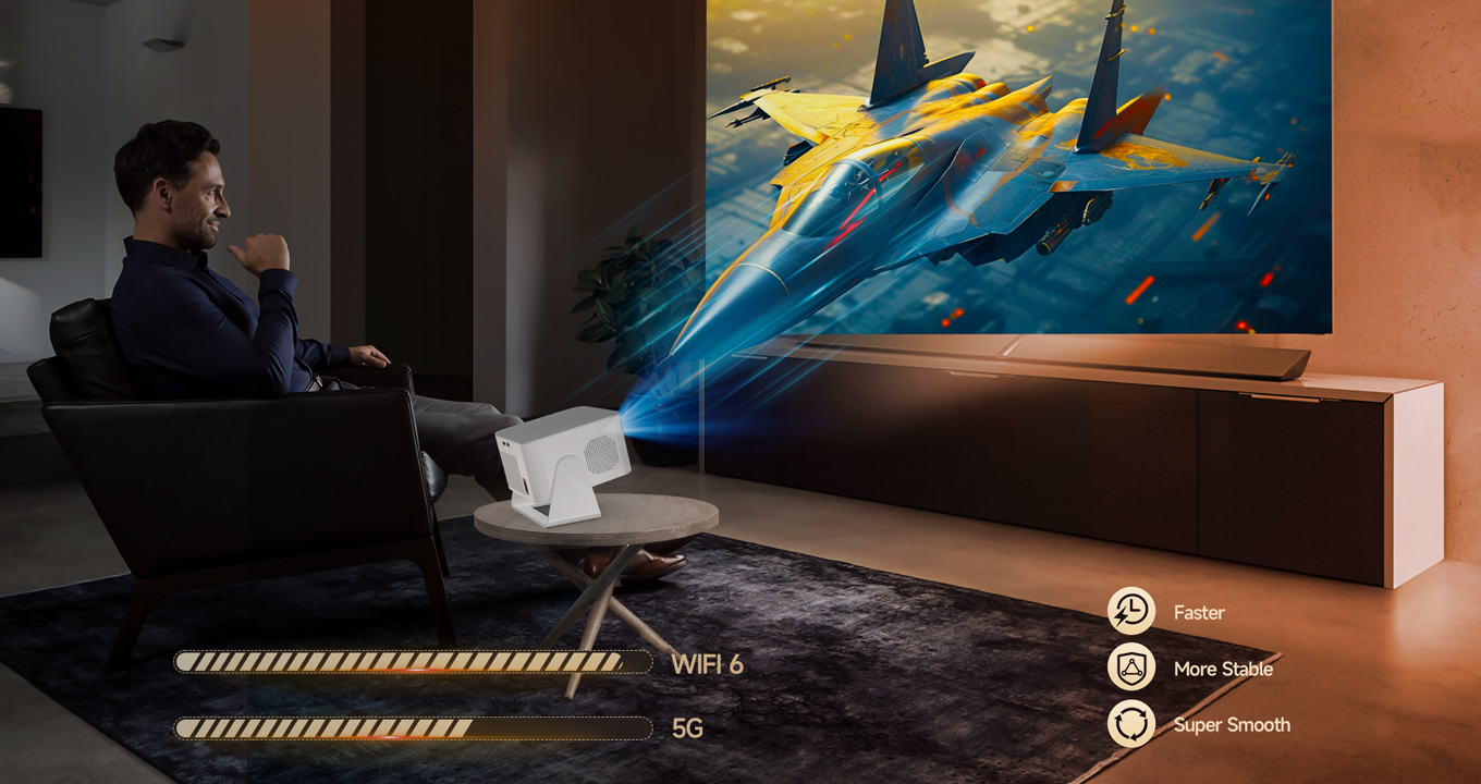 Your entertainment starts the moment you turn it on. The projector comes preloaded with popular streaming apps, so you can dive right into movies, shows, games, or video calls. Wirelessly mirror your phone, tablet, or laptop in just a few taps—perfect for sharing photos, presentations, or gameplay on the big screen.